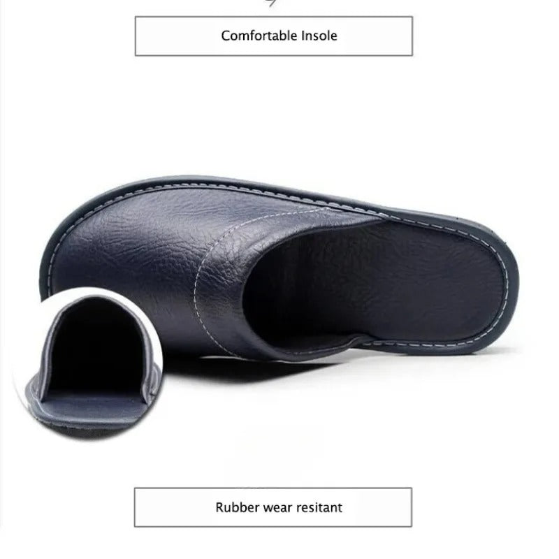 Men's & Women's Leather Winter Slippers, Thick Soft Warm Anti Slip Slides